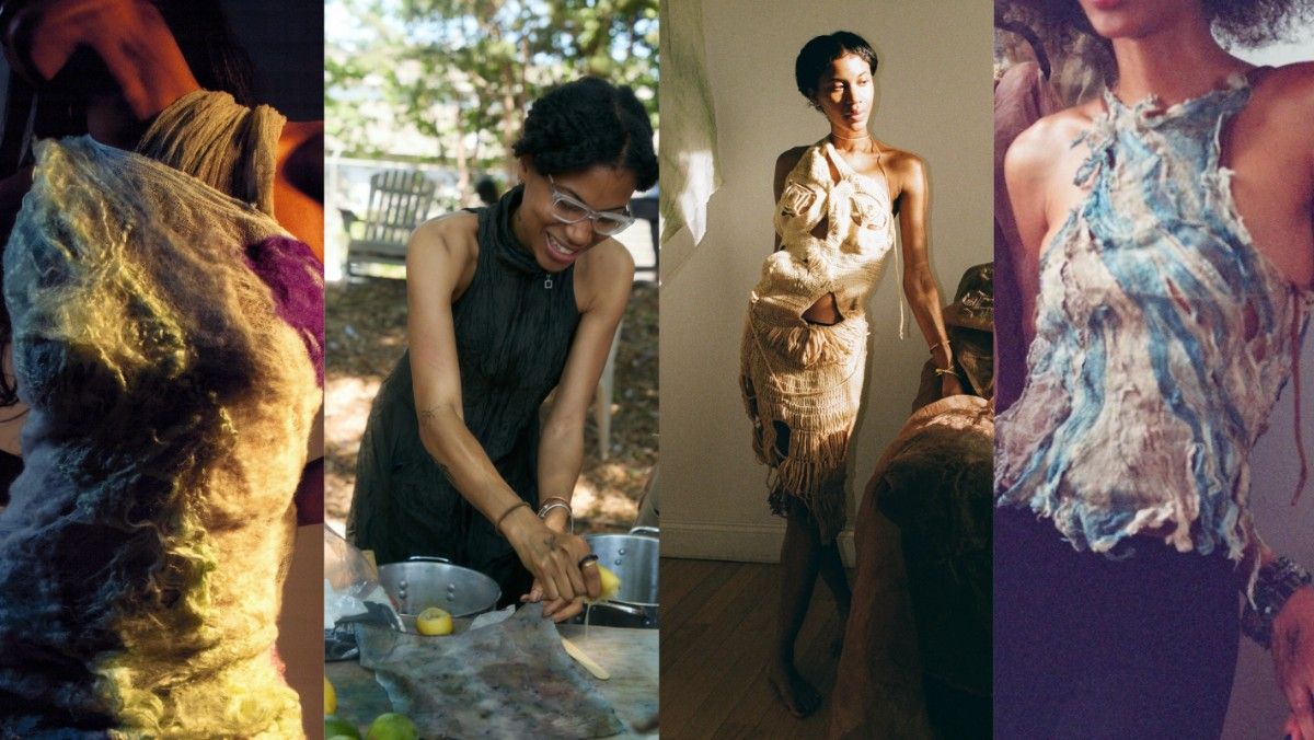 Tajah M. Ellis (1997, Brooklyn, NY) is a Belizean-American bio-designer whose craft embodies intuitive chemistry, organic mapping and biological emergence through fiber installation, material sculpture and garment construction.