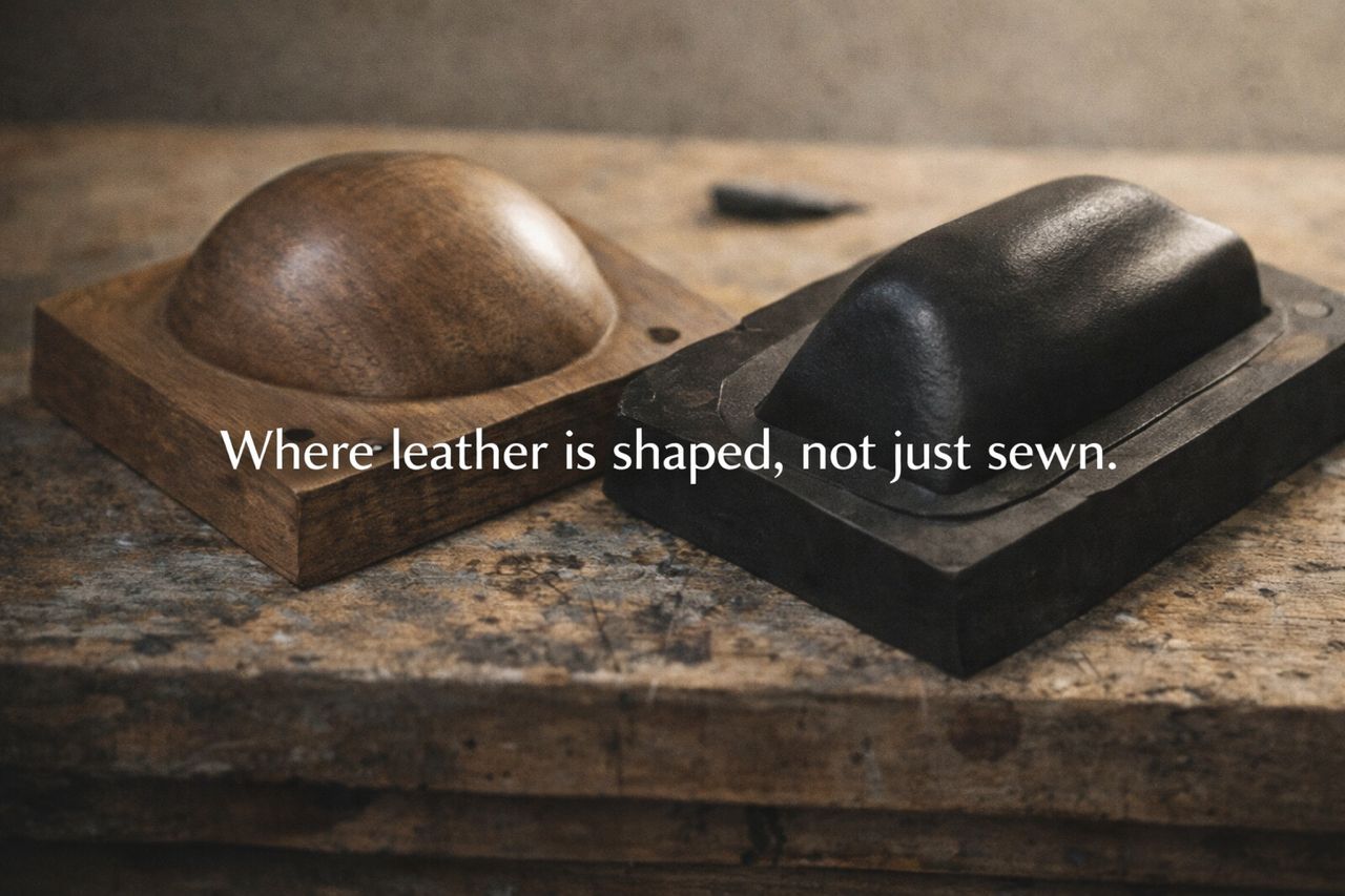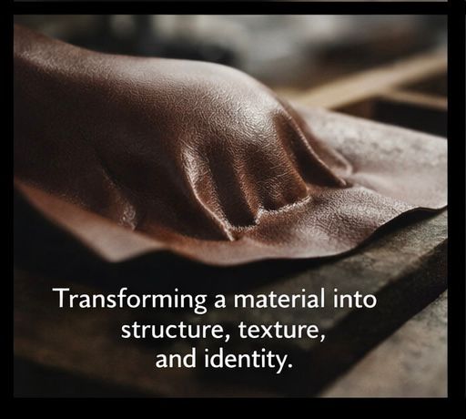 Voice-over: “Where leather is shaped, not just sewn.”