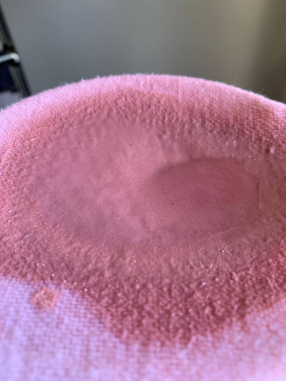 I obtained a soft pink to reddish-brown lake pigment derived from avocado seed dye fixed onto an aluminum hydroxide base. The exact hue depends on the seed maturity, pH, and concentration of alum and sodium carbonate.
