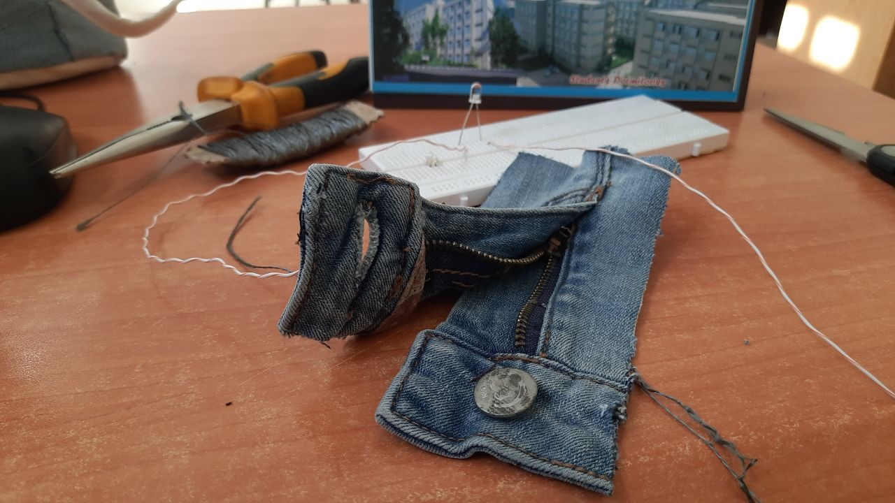 - Replace jumper wires with conductive thread sewn into fabric.