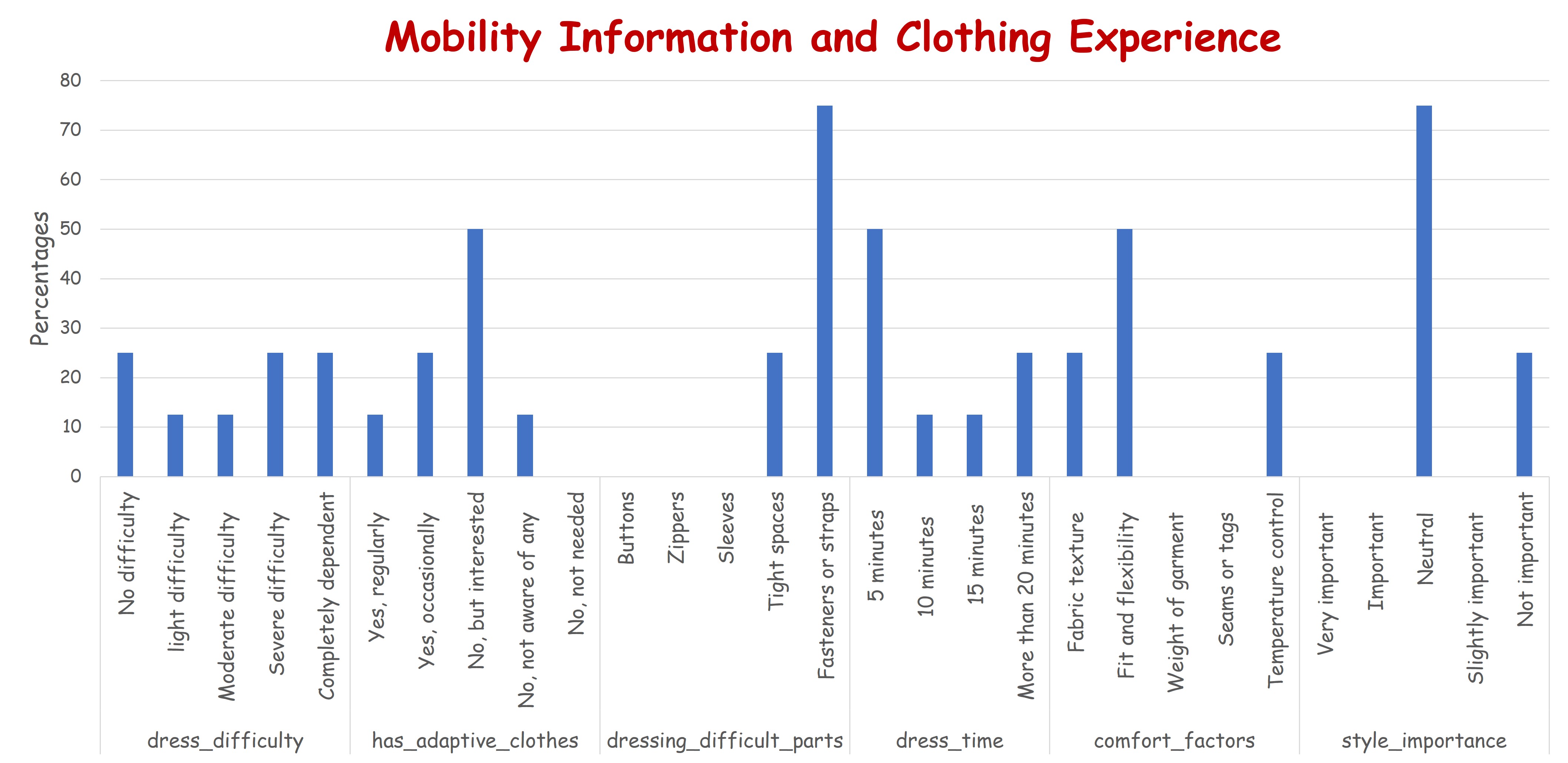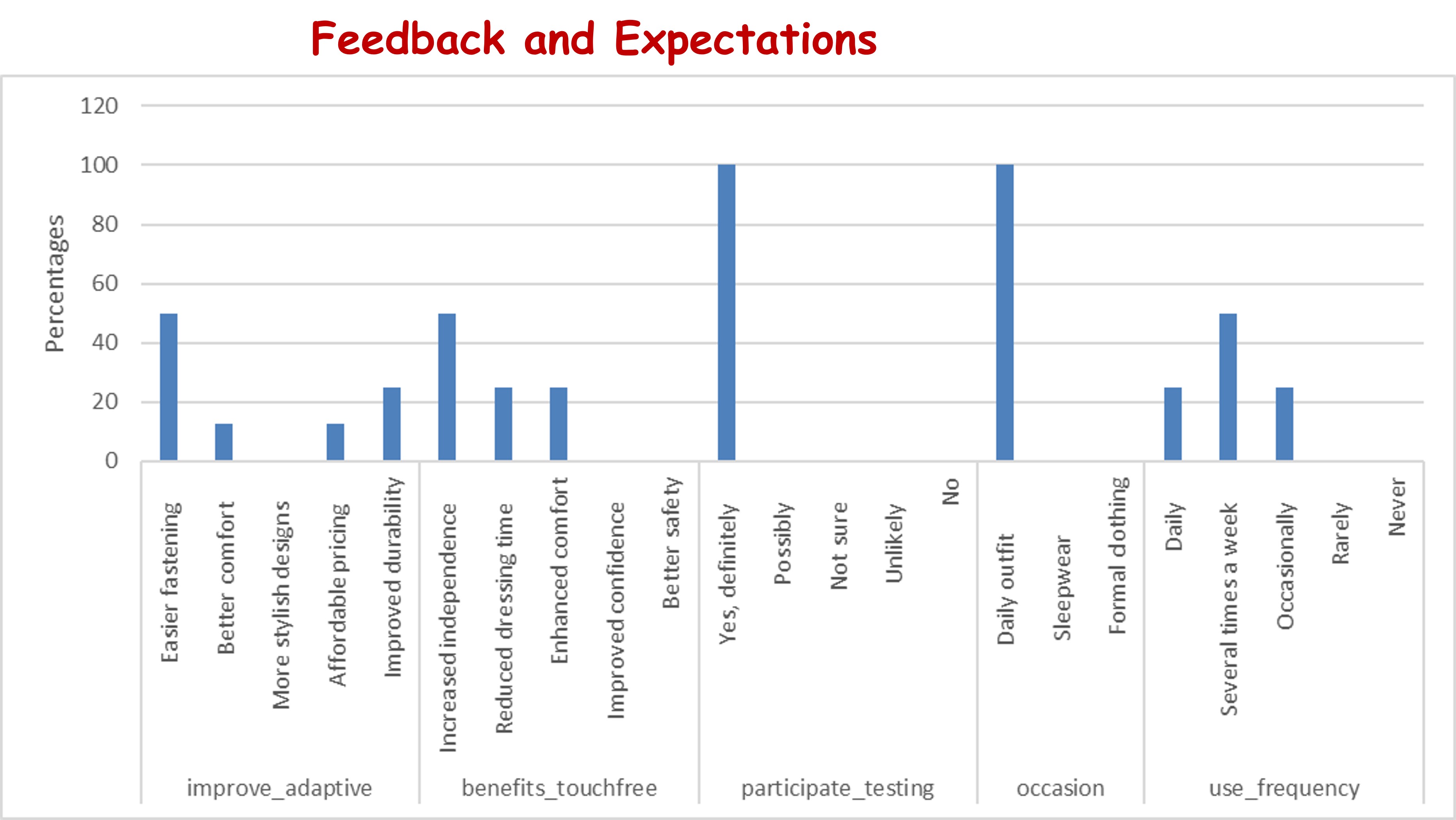 The study reveals that most people want adaptive clothing to be used as a daily outfit , many times per week that provides easier fastening and at competitive cost with a preference to cotton materials that are easy to be cleaned.